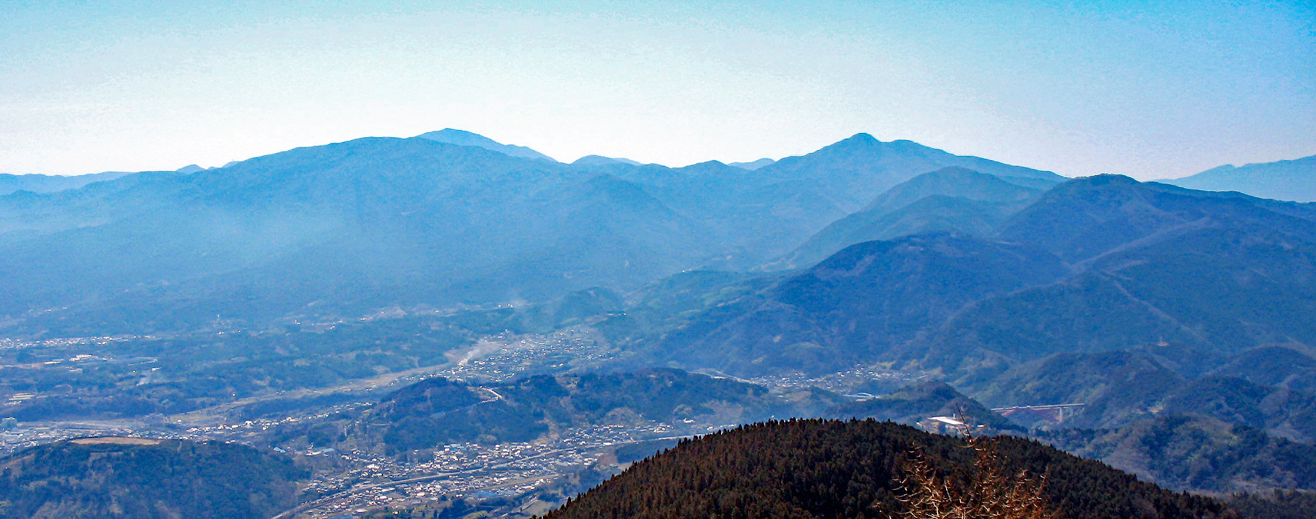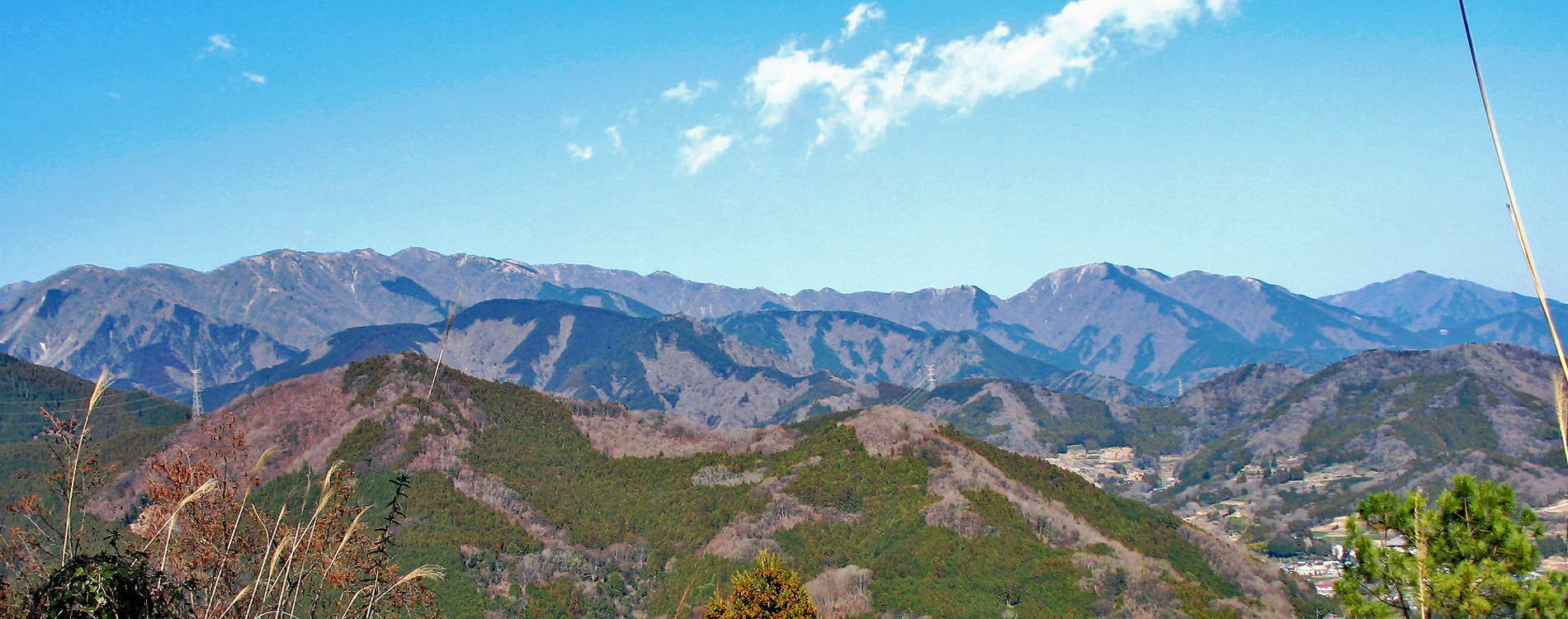 - 3月16日 丹沢・高松山山麓から鍋割山(左端)、塔ノ岳(左)、三ノ塔(右)、大山(右端)